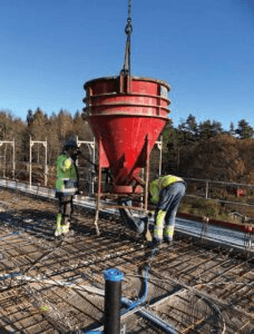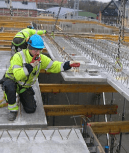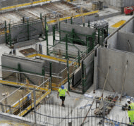 3 - Montáž – Na stavbe sa dielce osadia ako debnenie a spoja do finálneho tvaru budovy.