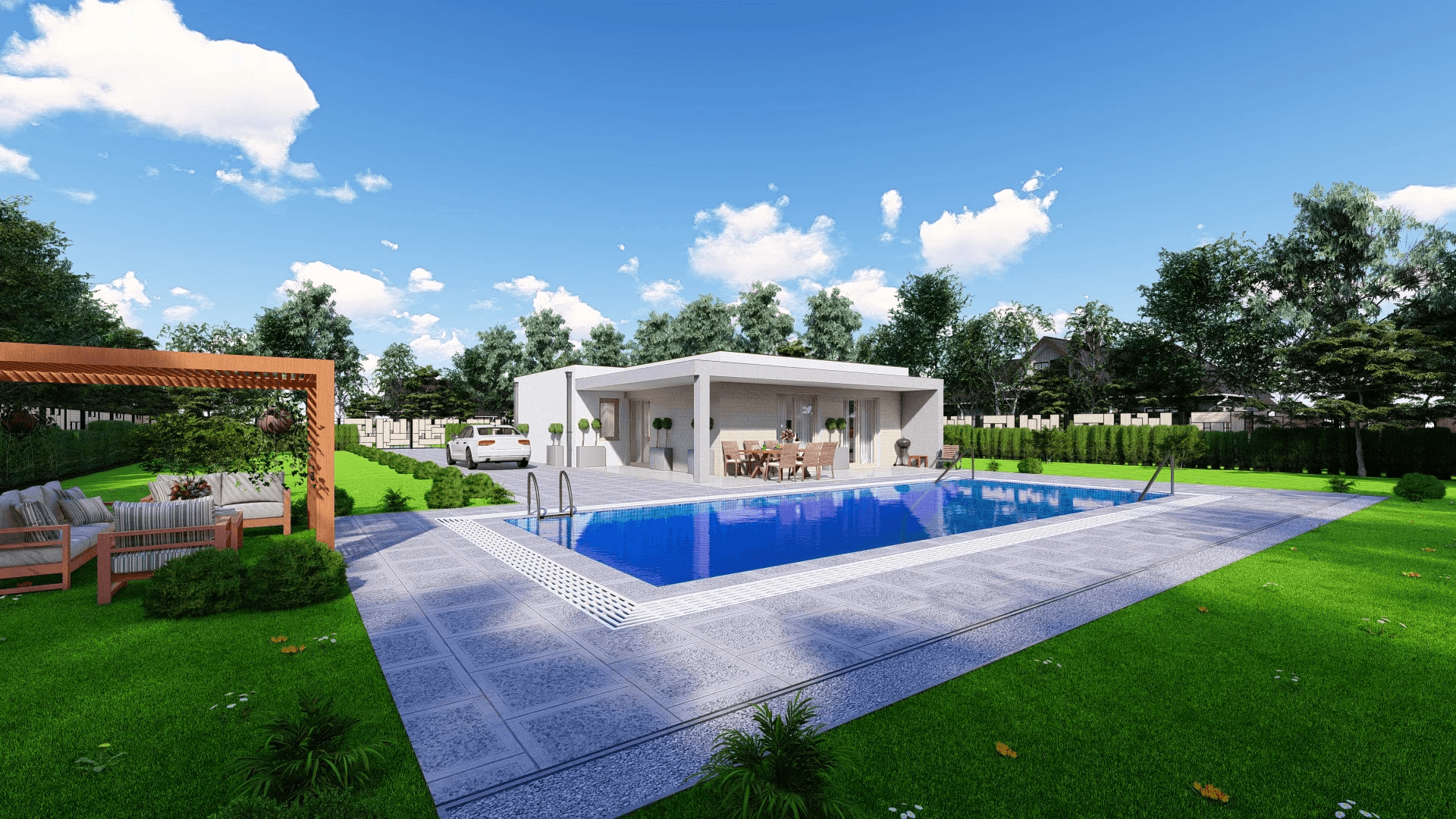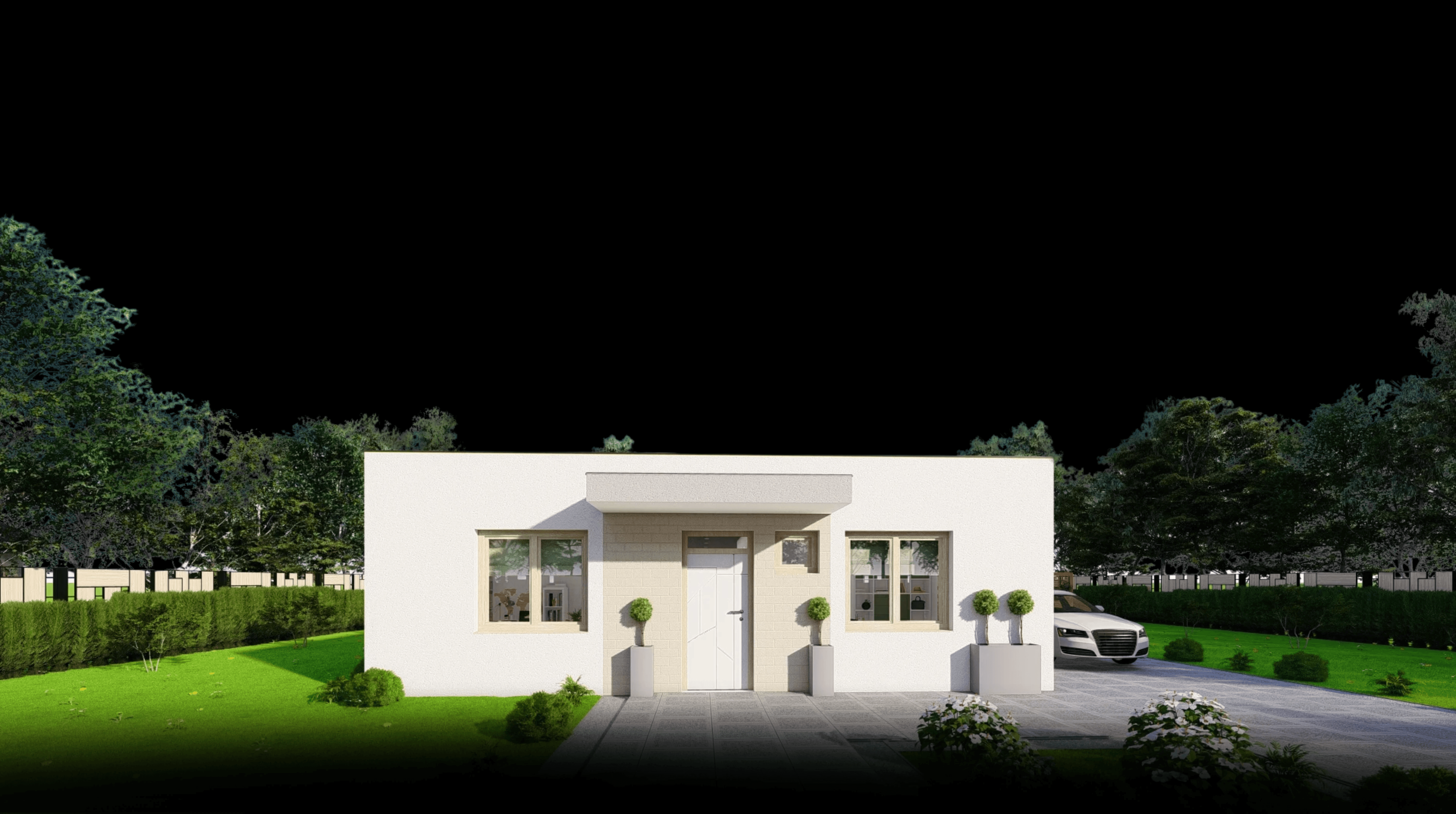 Projekt bungalovu je ideálnym bývaním pre tých, ktorí uprednostňujú jednopodlažné rodinné domy. Krásne 3 spálne tohto rodinného domu zaručujú pokojné bývanie pre stredne veľkú až veľkú rodinu.